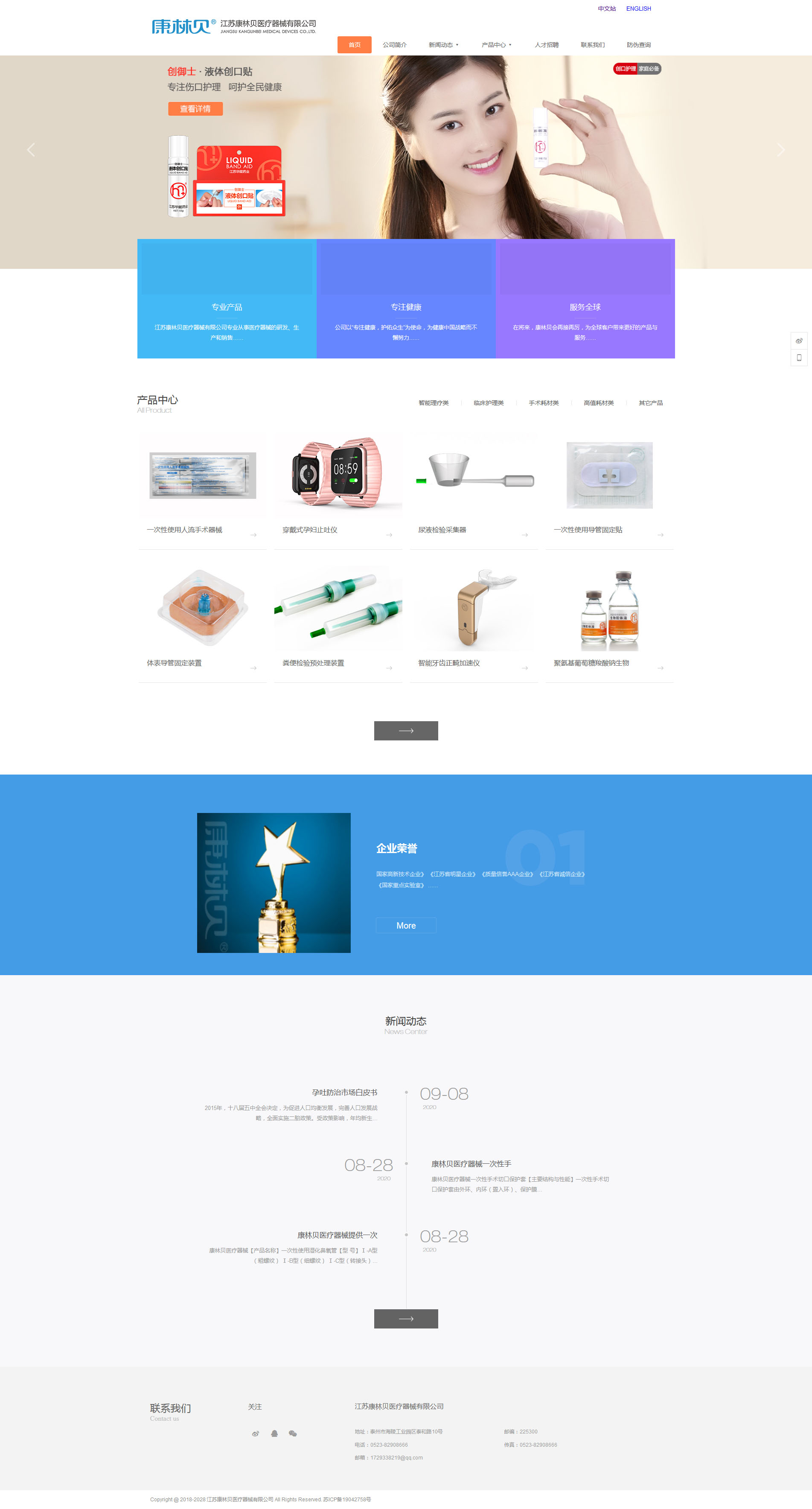 http://www.kanglinbei.com】坐落于歷史悠久、風(fēng)景宜人、有著“中國醫(yī)藥城”美譽(yù)的泰州,是一家以臨床護(hù)理類、手術(shù)耗材類、創(chuàng)面護(hù)理類、高值耗材類、智能理療類醫(yī)療器產(chǎn)品為主導(dǎo),集研發(fā)、生產(chǎn)和銷售為一體的現(xiàn)代化高新技術(shù)企業(yè)。