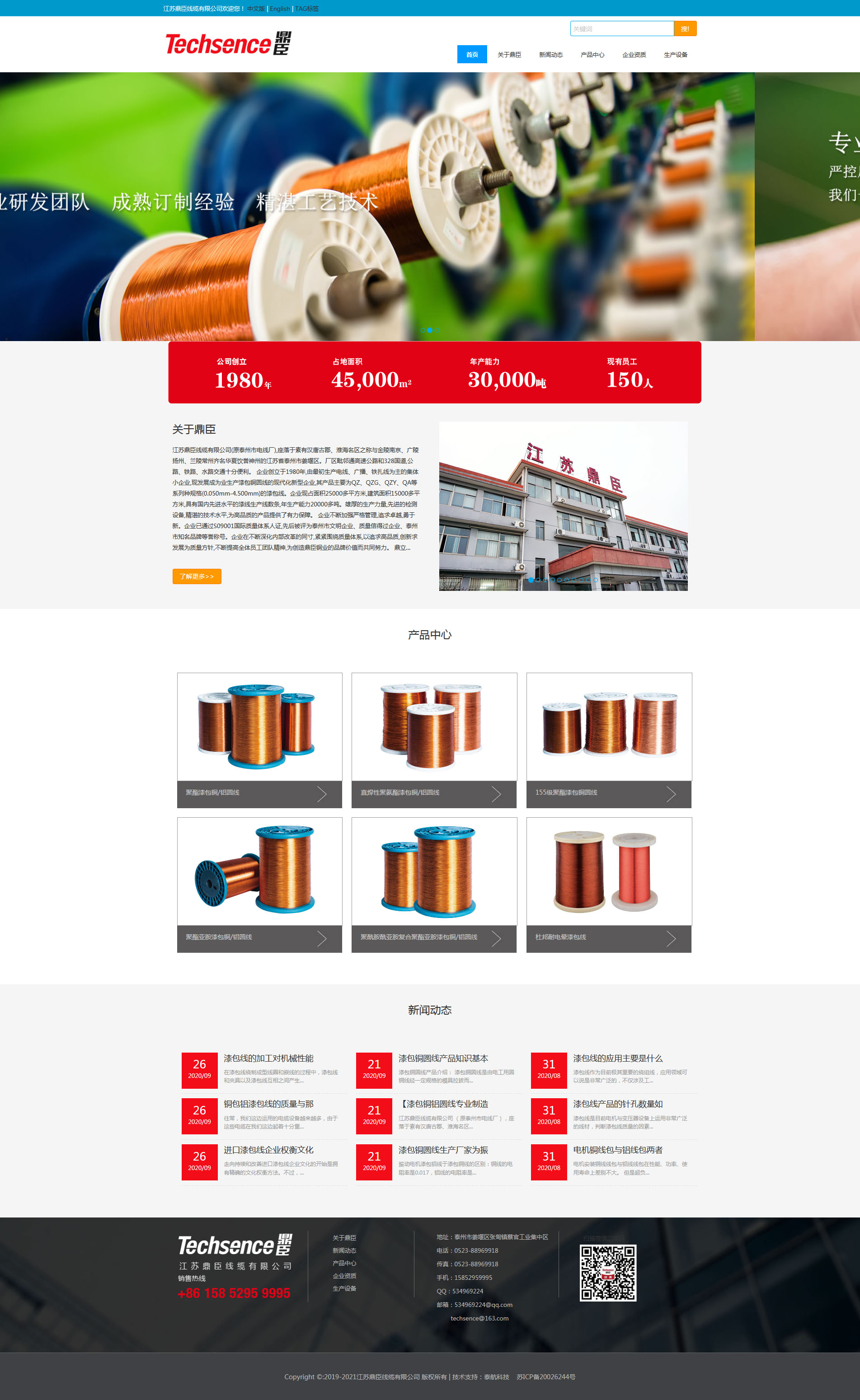 http://www.techsence.com】(原泰州市電線廠),座落于素有漢唐古郡、淮海名區(qū)之稱與金陵南京、廣陵揚州、蘭陵常州齊名華夏飲譽神州的江蘇省泰州市姜堰區(qū)。廠區(qū)毗鄰?fù)ǜ咚俟泛?28國道,公路、鐵路、水路交通十分便利。 企業(yè)創(chuàng)立于1980年,由最初生產(chǎn)電線、廣播、鐵扎線為主的集體小企業(yè),現(xiàn)發(fā)展成為業(yè)生產(chǎn)漆包銅圓線的現(xiàn)代化新型企業(yè),其產(chǎn)品主要為QZ、QZG、QZY、QA等系列種規(guī)格(0.050mm-4.500mm)的漆包線。企業(yè)現(xiàn)占面積25000多平方米,建筑面積15000多平方米,具有國內(nèi)先進水平的漆線生產(chǎn)線數(shù)條,年生產(chǎn)能力20000多噸。雄厚的生產(chǎn)力量,先進的檢測設(shè)備,精湛的技術(shù)水平,為高品質(zhì)的產(chǎn)品提供了有力保障。 企業(yè)不斷加強嚴(yán)格管理,追求卓越,勇于新。企業(yè)已通過S09001國際質(zhì)量體系人證,先后被評為泰州市文明企業(yè)、質(zhì)量信得過企業(yè)、泰州市知名品牌等譽稱號。企業(yè)在不斷深化內(nèi)部改革的同寸,緊緊圍繞質(zhì)量體系,以追求高品質(zhì),創(chuàng)新求發(fā)展為質(zhì)量方針,不斷提高全體員工團隊精神,為創(chuàng)造鼎臣銅業(yè)的品牌價值而共同努力。